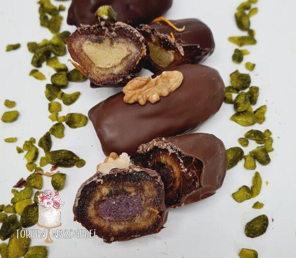 …feinste Valrhona und Lubeca Kuvertüre mit getrockneten Früchten sowie gerösteten Nüssen.