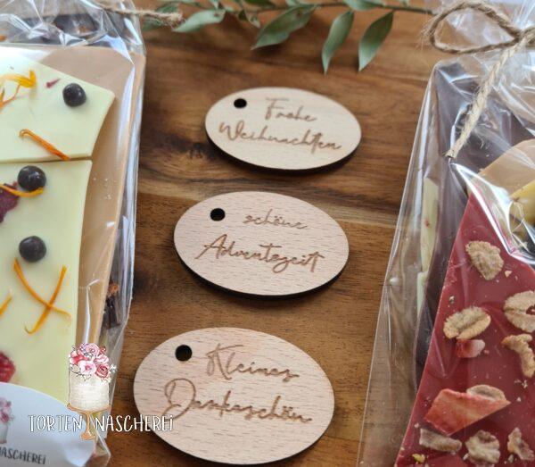 Auch heuer gibt es wieder die hübschen Holzanhänger, die eure Geschenke noch ein Stück besonderer machen.