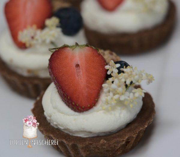Kakao- Mürbteigschüsserl mit Vanillesahne & frischen Beeren